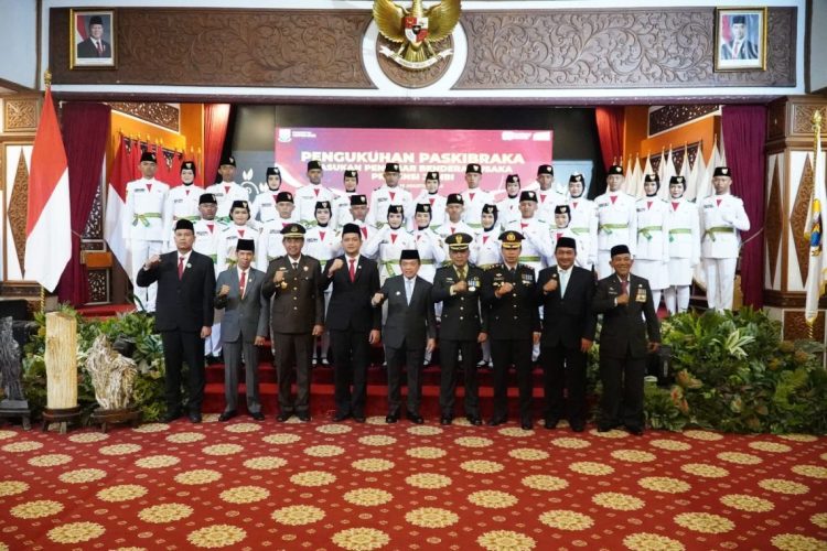 JAMBI – Gubernur Jambi, Al Haris, secara resmi mengukuhkan Pasukan Pengibar Bendera Pusaka (Paskibraka) Provinsi Jambi tahun 2025 dalam sebuah upacara yang berlangsung khidmat di auditorium Rumah Dinas Gubernur, Jumat (15/08/2025) malam.