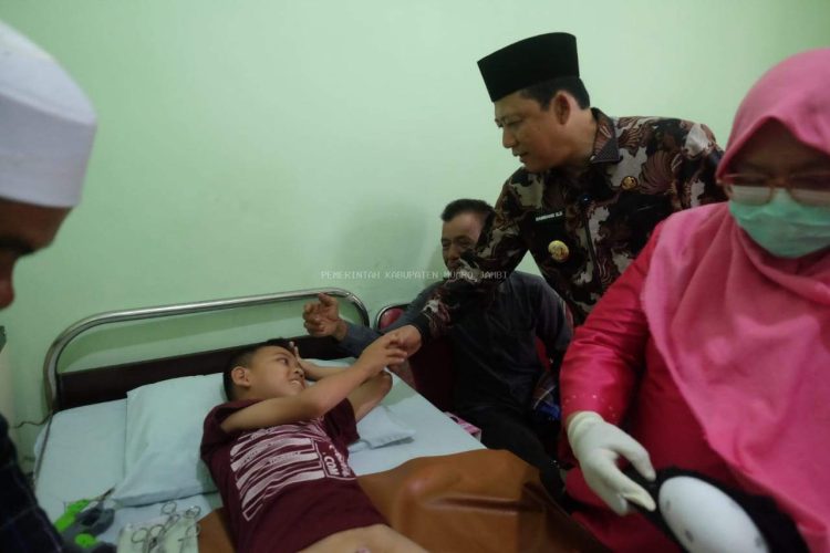 MUARO JAMBI – Bupati Muaro Jambi, Bambang Bayu Suseno, melakukan kunjungan ke Puskesmas Desa Puding, Kecamatan Kumpeh, pada Selasa (24/6/2025) untuk memantau langsung pelaksanaan program sunat gratis atau “Sikulup Gratis”. Kunjungan ini dilakukan setelah Bupati menghadiri Haflah Pondok Pesantren Al Anwar.