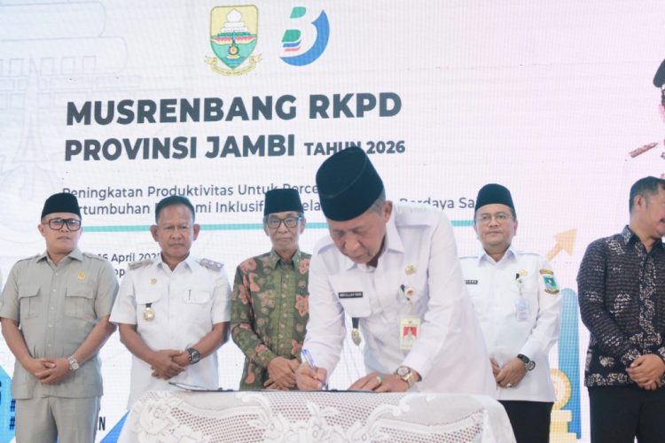 Jambi – Pemerintah Provinsi Jambi menggelar Musyawarah Perencanaan Pembangunan (Musrenbang) Rencana Kerja Perangkat Daerah (RKPD) tahun 2026. Acara tersebut dihadiri secara langsung oleh Bupati dan Walikota se-Provinsi Jambi, bertempat di Aula Mayang Mangurai Bappeda Provinsi Jambi, Rabu (16/04/2026) pagi.