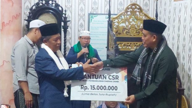 Selain melaksanakan sholat subuh berjama’ah, Wagub Sani juga memberikan beberapa bantuan dan santunan kepada anak-anak yatim dan kaum dhuafa serta bantuan untuk Masjid Babussalam yang diserahkan secara simbolis oleh Wagub Sani kepada pengurus Masjid Babussalam senilai Rp. 15 Juta dari dana Corporate Social Responsibilty (CSR) Bank 9 Jambi.