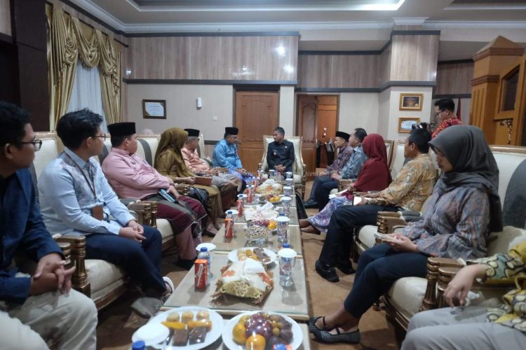 MUARO JAMBI – Wakil Bupati Muaro Jambi, Junaidi H. Mahir, didampingi Sekretaris Daerah (SEKDA) Budhi Hartono, menyambut hangat kunjungan Kepala Badan Pemeriksa Keuangan (BPK) RI Perwakilan Provinsi Jambi, Muhammad Toha Arafat, beserta jajarannya di ruang kerja Kantor Bupati Muaro Jambi pada Jumat, (2/5/2025.)